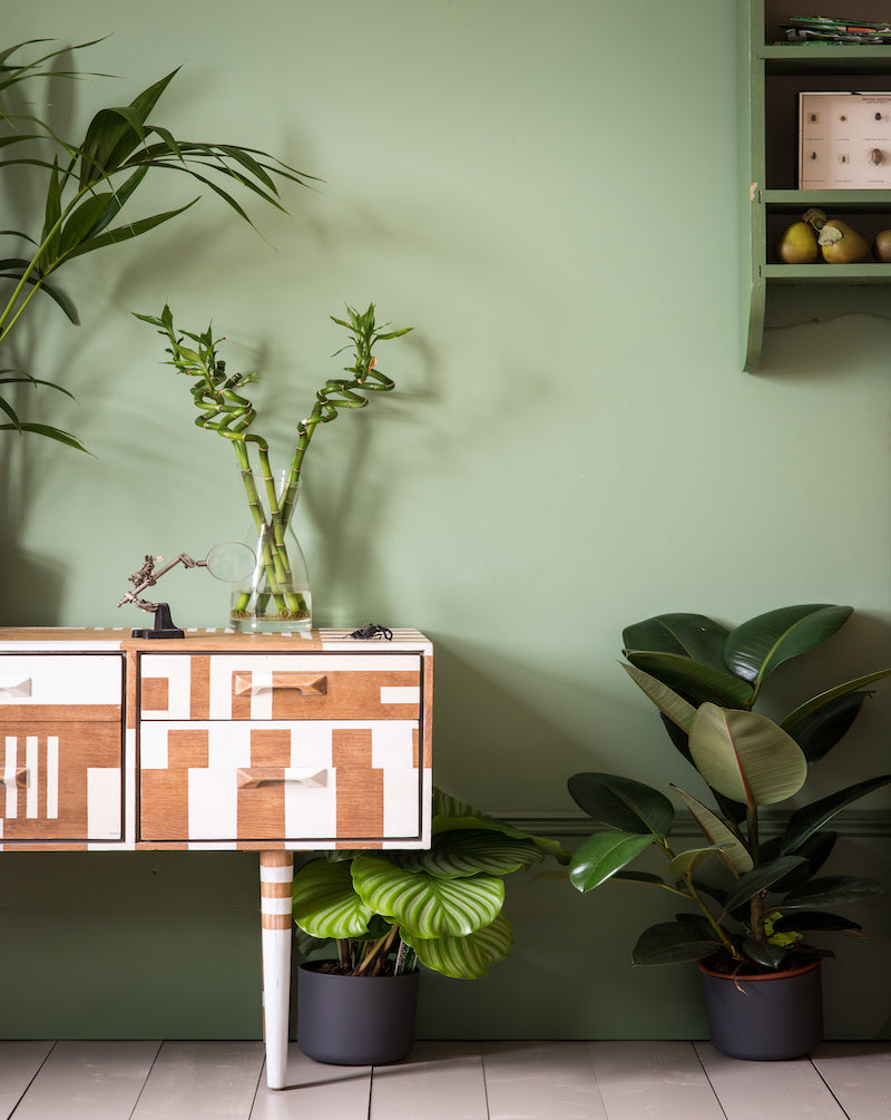 Von all unseren Grüntönen ist Breakfast Room Green der heiterste. Sowohl das Sonnenlicht als auch stimmungsvoller Kerzenschein erwecken ihn zum Leben. Traditionell wurden für die erste Mahlzeit des Tages die nach Osten ausgerichteten Räume bevorzugt, denn das klare Morgenlicht enthüllt die komplexe Farbtiefe dieses Grüntons am besten. Wenn er auf den Wänden und Holzarbeiten zum Einsatz kommt, wirkt er besonders bezaubernd.