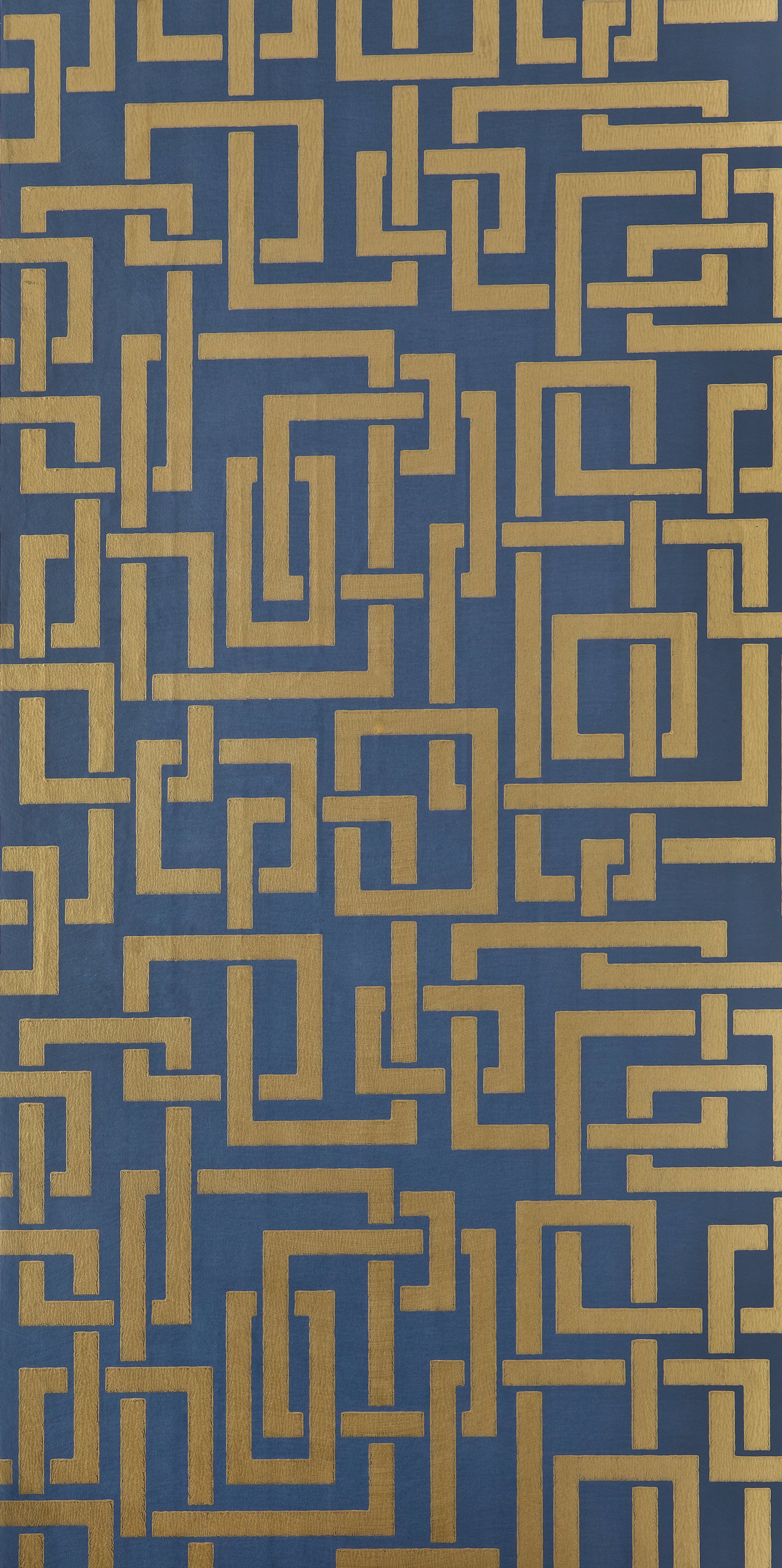Das mathematisch präzise und gleichzeitig sehr dynamische anmutende Muster Enigma ist nach dem Code benannt, den der Mathematiker Alan Turing im zweiten Weltkrieg erfolgreich dechiffriert hat. Die ineinander greifenden Rechtecke wirken fast ein wenig hypnotisierend.