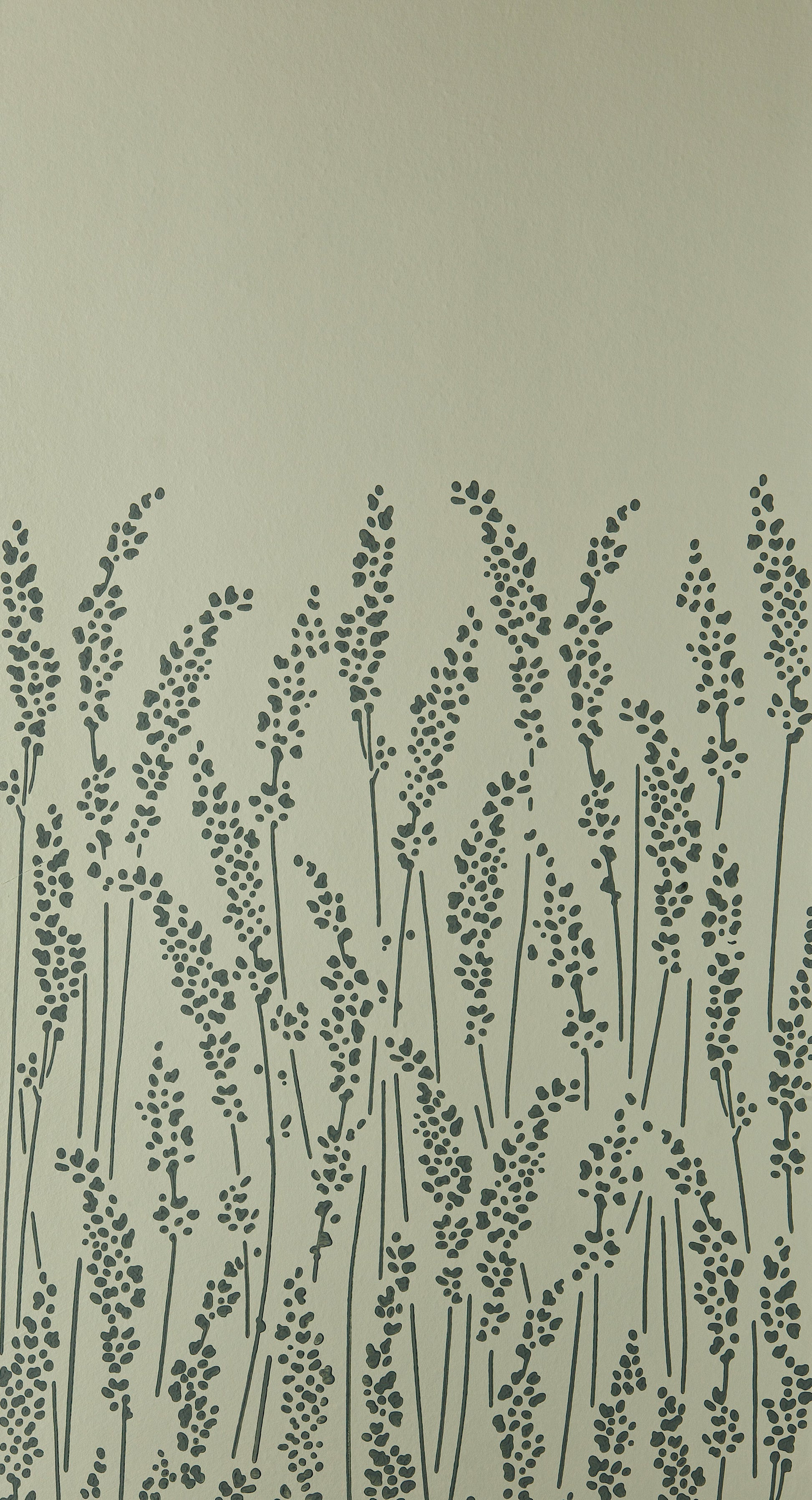 Diese Tapete zieren Halme, die sich fast im sanften Wind zu wiegen scheinen. Das Federgras-Muster erinnert an ruhige Tage in Dorset auf dem Land und fühlt sich sehr natürlich und entspannend an. Die Besonderheit ist, dass es auf einer großen Wand tatsächlich wie eine Wiesenkulisse wirkt, über der sich der Himmel weit aufspannt.