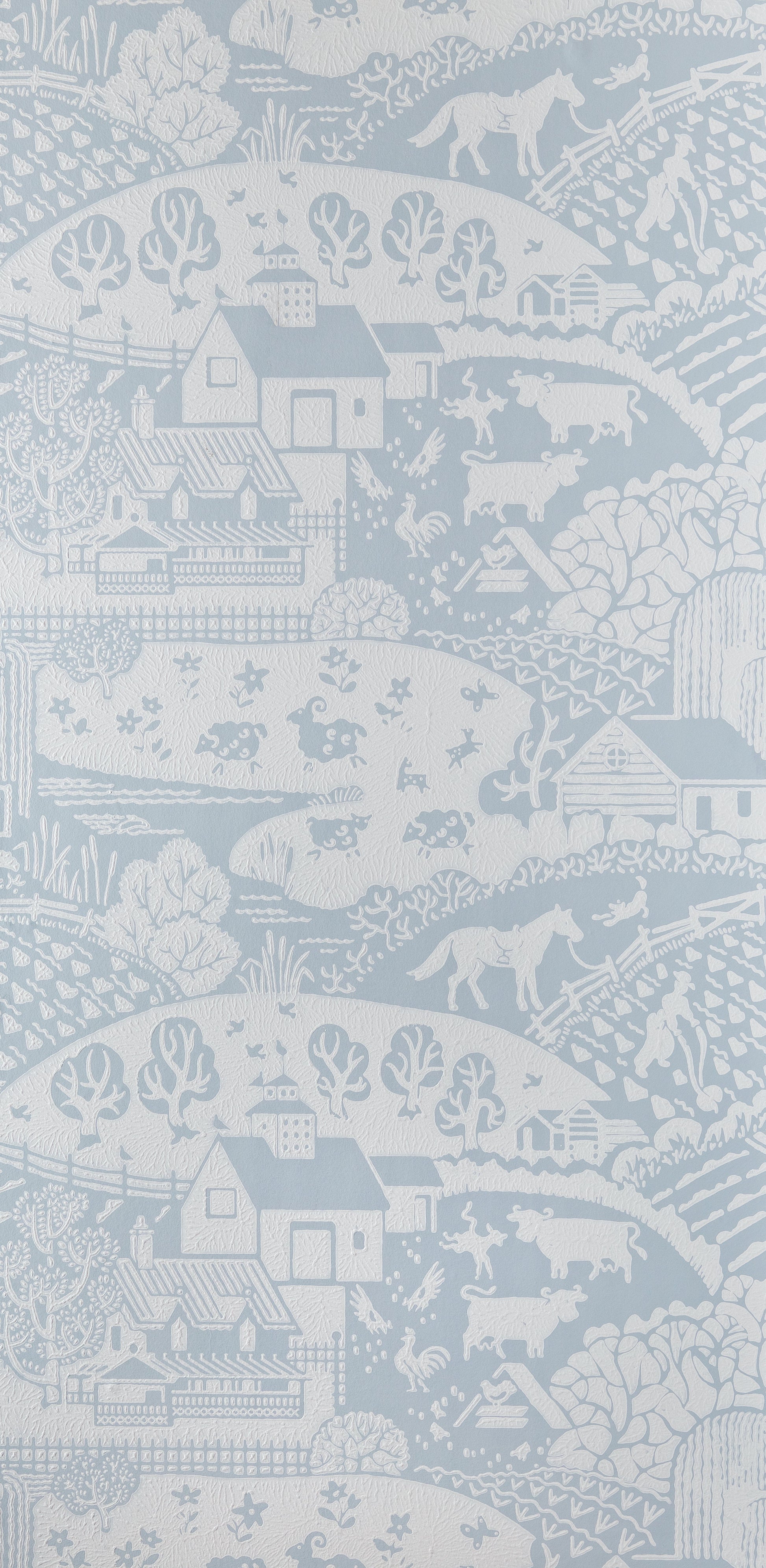 Gepflügte Äcker, Holzzäune, Kühe, Pferde, Katzen, Hunde – Gable zeigt das Leben eines Bauernhofs in einer geradezu kindlichen Idylle. Durch ihr cleanes, modernes Styling kann sie auf einer Wand einen großformatigen Akzent setzen, der friedlich und detailreich zugleich wirkt.
