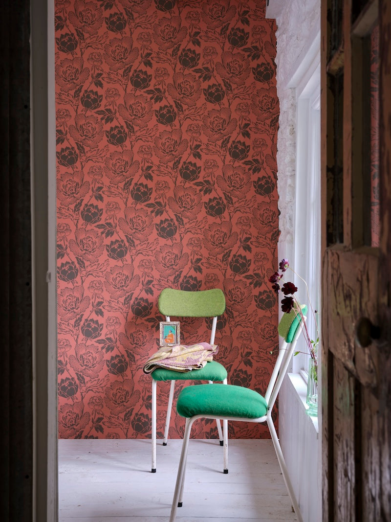 Peony ist ein schönes Blumenmotiv, das zu einem modernen Setting genauso passt wie zum traditionellen Landhausstil. Die stilisierten Pfingstrosen kombinieren zeitgemäßen Glamour mit einem Hauch Romantik und können in alle Räume Farbe einziehen lassen.