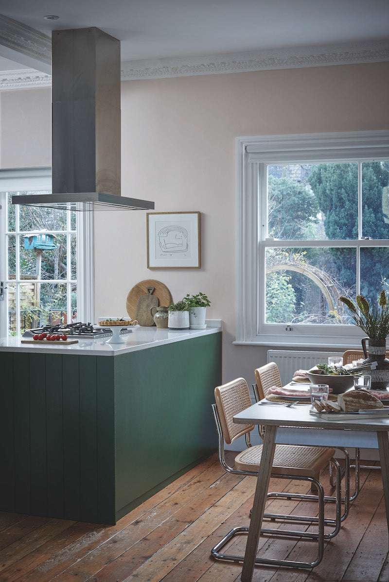 Pink Ground startete als Hintergrundfarbe für Tapeten und wurde so oft nachgefragt, dass wir es als Farbe ins Sortiment aufgenommen haben. Mit seinen gelben Pigmenten wirkt es weich und warm, ohne zuckrig zu sein. Kombinieren Sie es statt mit einem hellen Weißton lieber mit Great White, damit wirkt der Raum weicher und harmonischer und garantiert einzigartig!