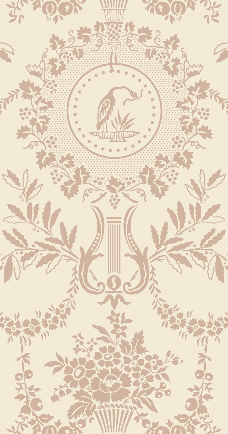 Mit seinem eleganten Muster, das von Fischreihern verziert wird, wirkt Purnon wahrhaft herrschaftlich. Das Motiv wurde auf einem Paravent aus dem 18. Jahrhundert entdeckt, der bei großen Banketten im Schloss als Raumteiler fungierte.