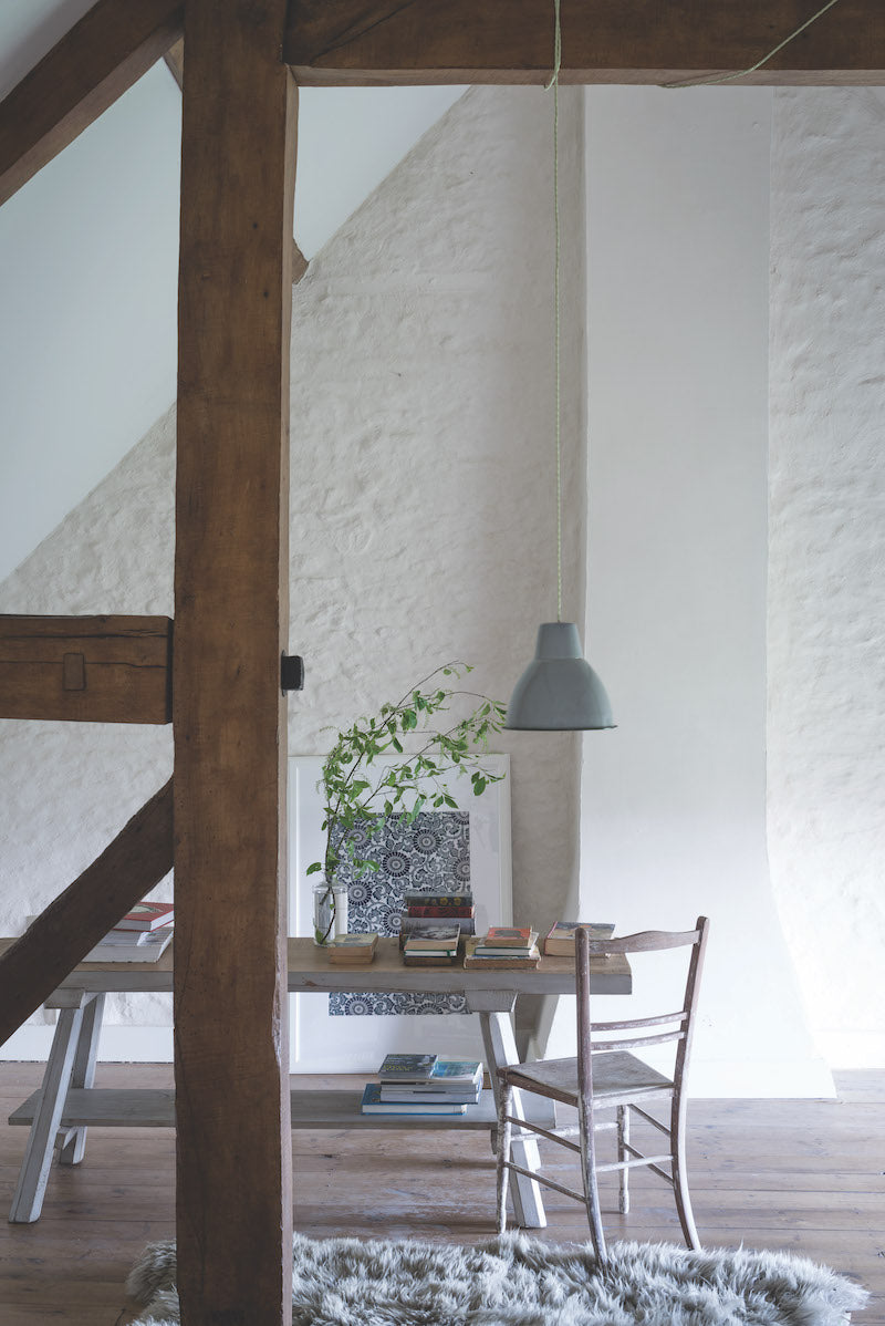 Es ist weder besonders warm, noch besonders kühl – Shaded White bildet die Farbe ab, die entsteht, wenn Weiß im Dunkeln liegt. Das dezente Grau hat weniger Blau als beispielsweise Cornforth White, und passt genauso gut in Altbauten wie moderne Häuser. Es wird oft mit dem gelblichen Pointing oder Slipper Satin kombiniert und wirkt dann sehr ruhig und friedlich. Mit Drop Cloth kombiniert, entsteht ein sehr relaxter Look.
