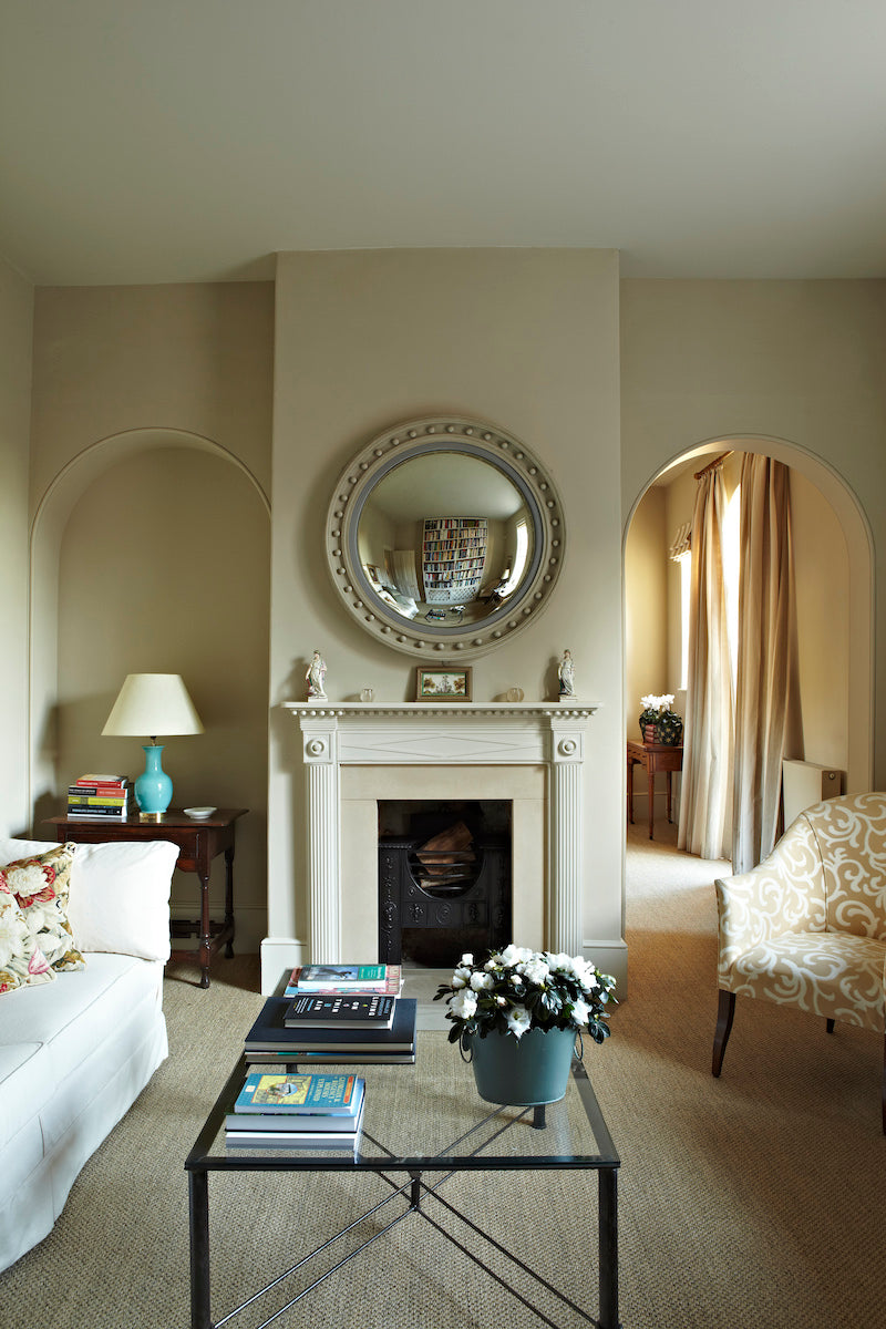 Stony Ground war die beliebteste Hintergrundfarbe für unsere Tapeten. Daher entschieden wir, sie auch als Wandfarbe anzubieten. Es wirkt oft ähnlich wie Old White, verfügt aber über weniger grüne Untertöne. Viele Menschen erinnert es an warme Sandsteinmauern.