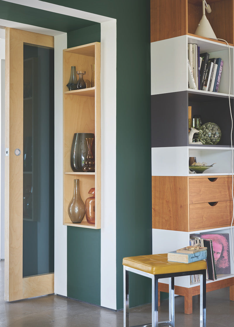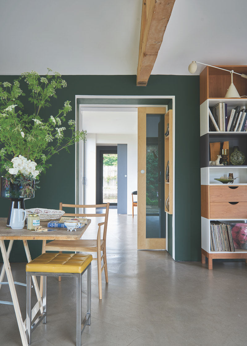 Unser dunkelster Grünton war im Farrow & Ball Atelier gestrichen, in dem wir einen Großteil unserer ersten Farben entwickelt haben. Wenn Studio Green auf einer größeren Fläche draußen gestrichen wird, dann reagieren die Pigmente außerordentlich auf alle Arten von Licht, und die Farbe sieht viel grüner als auf der Farbkarte aus. In dunklen Räumen wirkt die Farbe fast schwarz.
